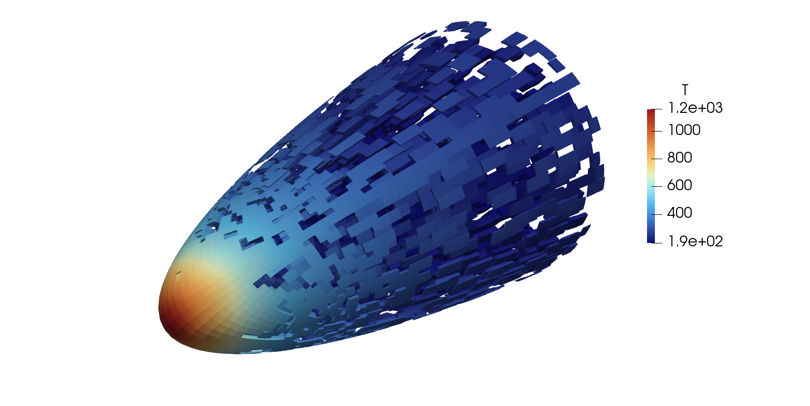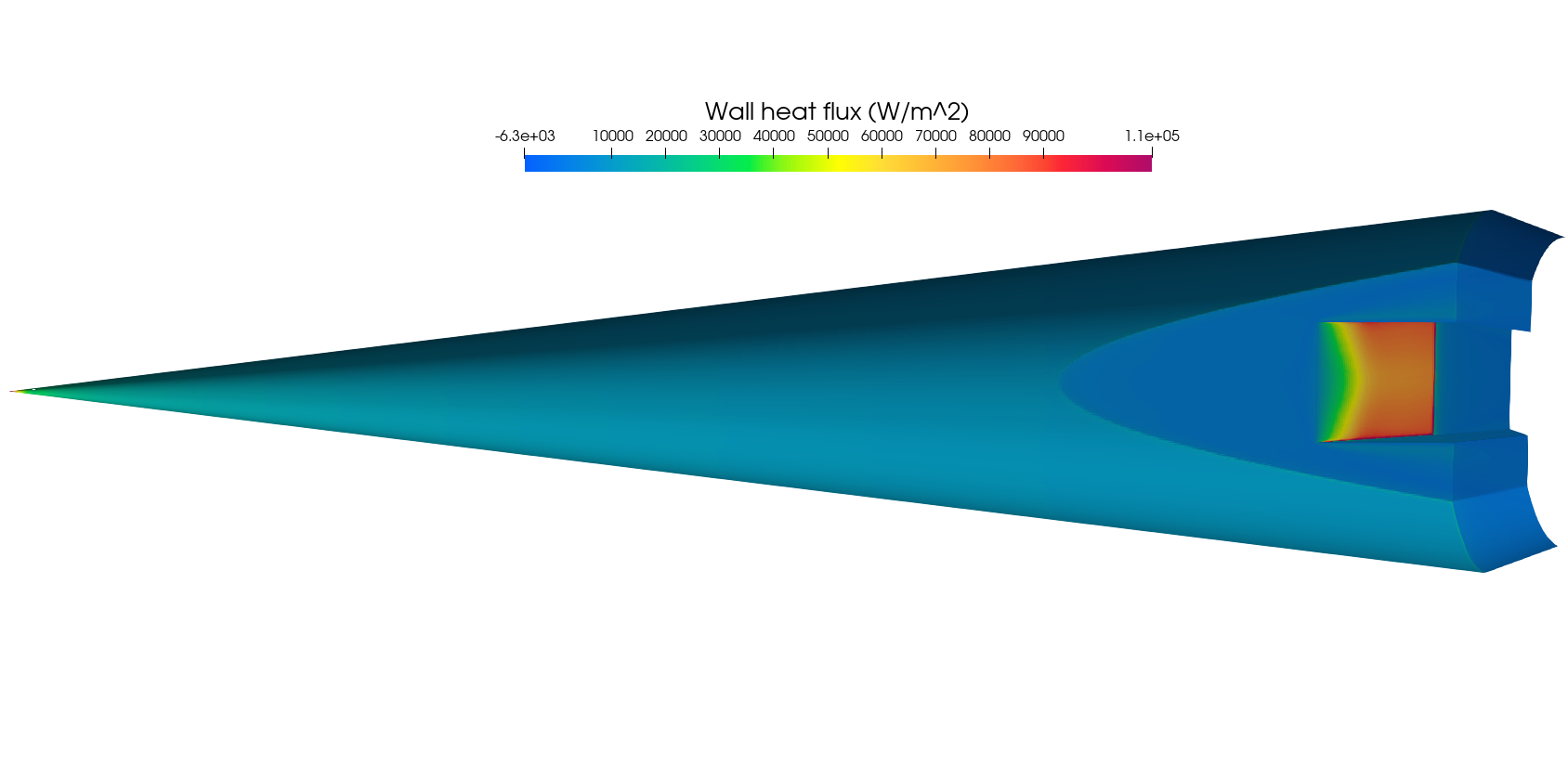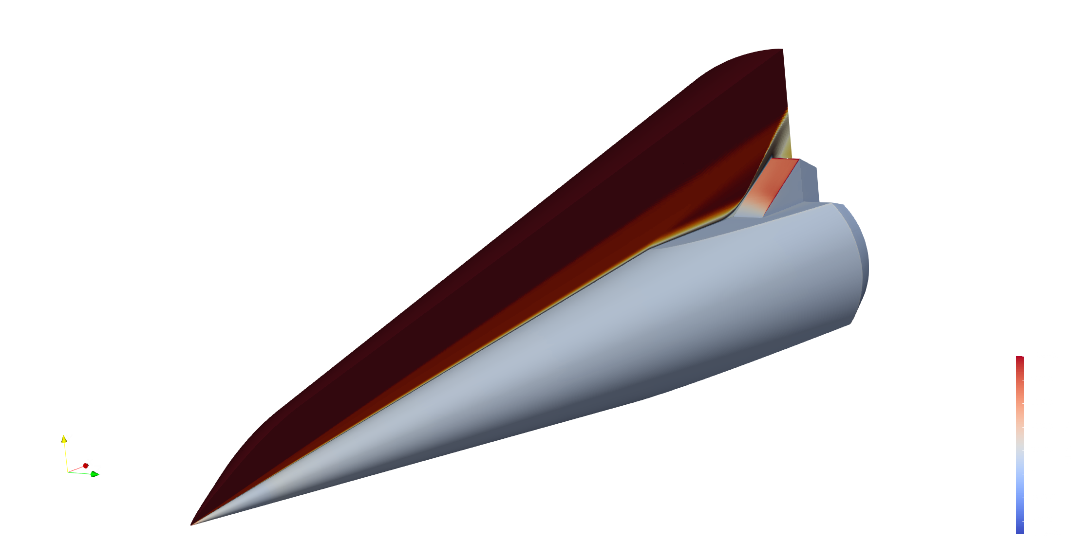 Cone-slice-wedge geometry with wall heat flux and a flow-field slice.#